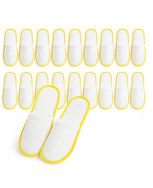 Чехли за еднократна употреба, за гости, хотел, СПА и Airbnb – бели с жълт кант, 5мм подметка, универсален размер