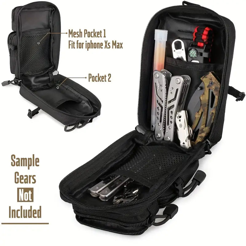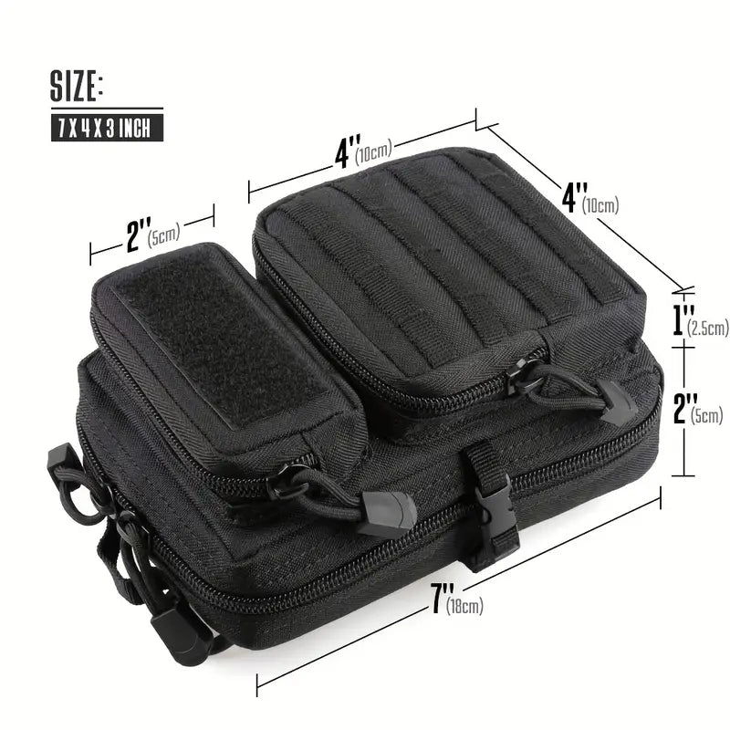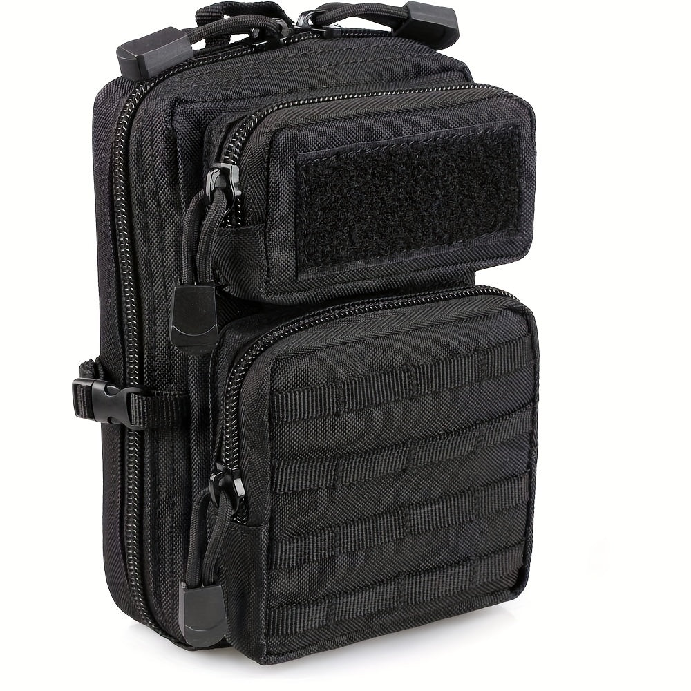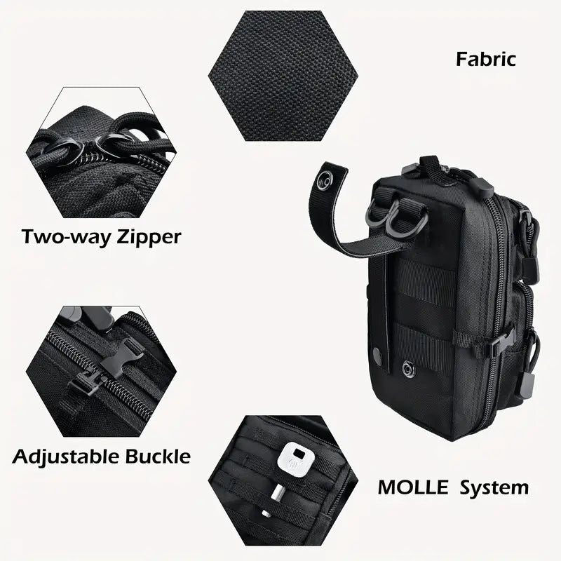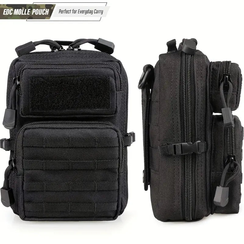Компактна тактическа чанта с MOLLE система – Универсална чанта за инструменти, къмпинг и ежедневно носене – Черна, 1.5L + подарък нашивка