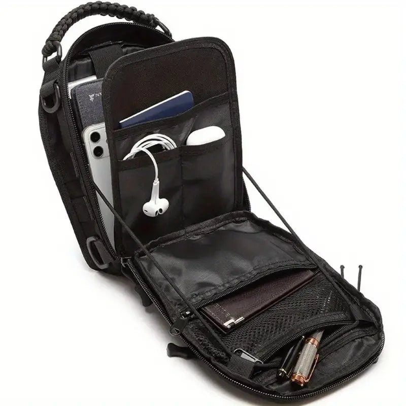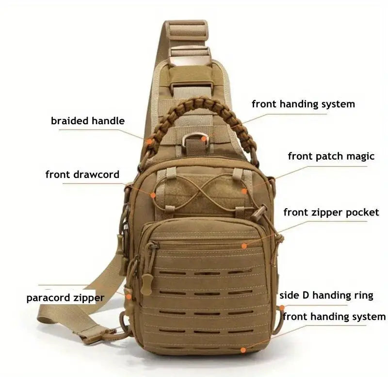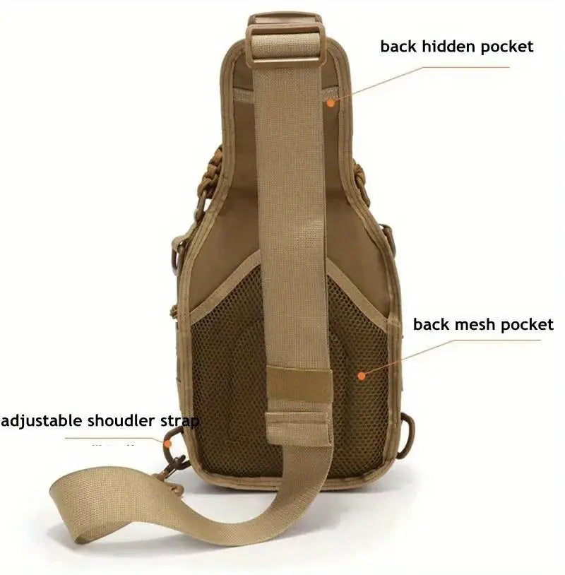Поддържайте екипировката си под ръка с тази компактна тактическа мъжка чанта през рамо. Изработена от висококачествен 900D Оксфорд плат, устойчива на износване и влага, тази чанта е идеален избор за планина, къмпинг, риболов, лов или ежедневна употреба в града.